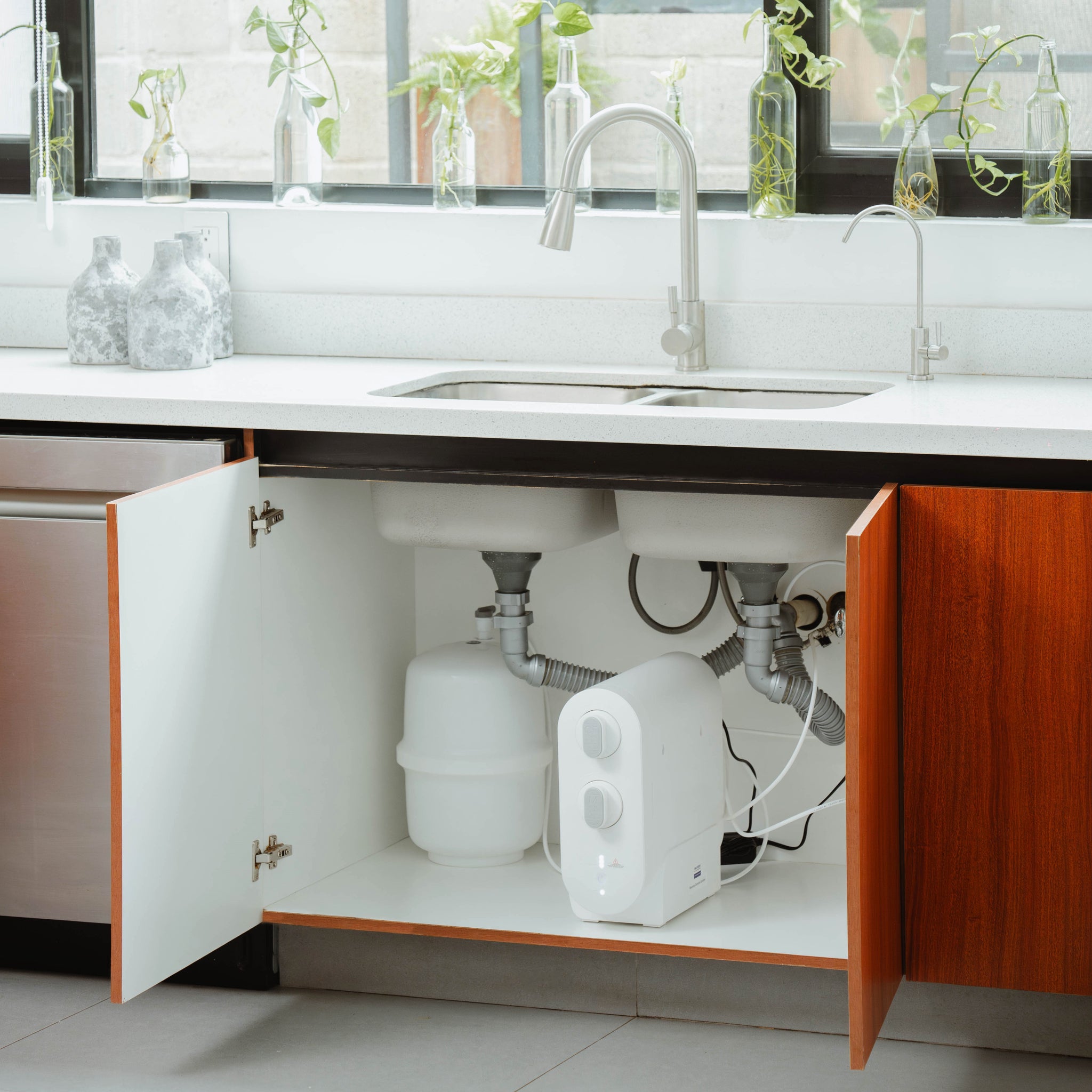 Kit de instalación | Incluye las conexiones adecuadas para instalar y conectar las mangueras, los 2 cartuchos CBPA y RO, un hidroneumático local y un grifo cuello de ganso de acero inoxidable. |